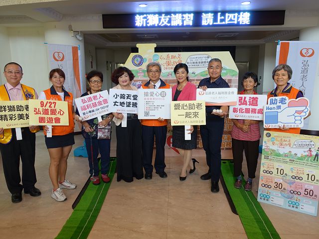 弘道老人福利基金會彰化服務處將於9/27(日)9點~14點在鹿港體育場舉辦「群獅助老精彩美好 弘道助老愛心園遊會」希望透過活動募集300萬元助老經費,本次邀請了國際獅子會300- C3區第八專...(詳全文) |